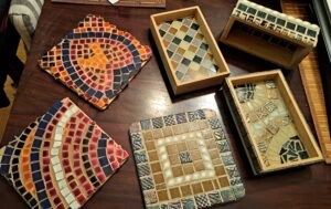 TWO & THREE DAY WORKSHOPS: Pricing is based on amount of hours for the entire session, with the same 2 – 3 hour length each day. These longer sessions are a way for people to connect with others while trying something new. In these sessions you create a larger piece, learn how to nip tiles, create and glue curved designs, and grout and polish your piece. All of the materials and tools you’ll need will be provided, so just bring anything for inspiration!